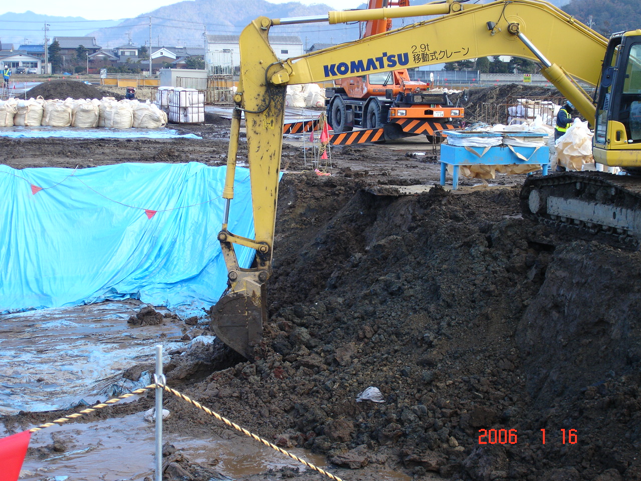 説明会の現場 業者が急遽土を搬入し、フェロシルトはほとんど隠された。
