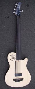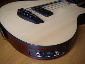 2010年10月、Tune TS-365を下取りに出して購入。 Bunch Of CosmosやAseyowa(^^;)のアコバージョンなど、アコースティク系のバンドでの活動がメインになったので、座って弾けて、それらしい音と雰囲気の物が欲しくなり購入。レースセンサーのマグネティックPUがついているのもポイントが高い。フィンガーレストは使わないので外してしまおうとおもったけど跡が残るんでやめました。 GR(ギター・シンセサイザー)用の出力がついているので、たまにつないで遊んだりしています。 34インチスケール、5弦フレットレス。ボディサイズはGodinのギター(テレキャスターくらい)より一回り大きく、34インチスケールなのにかなり大きい。 |