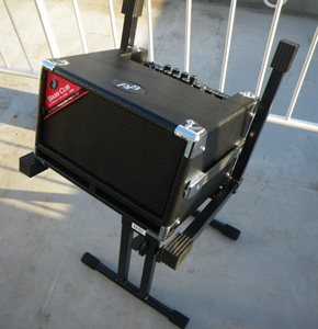 Gallien-Krueger MB150E112(100-150W)を使っていたが、野外ライブでのパワー不足を感じて買い替えた。これはこのコンボ状態で300W、増設スピーカーを使うと800Wまで上げられる。ヘッドは外せて、他のスピーカーで使うことも可能。内蔵のスピーカーは、正面向きにミッドレンジ、下向きにウーファーが入っている。エフェクターがついているが、つまみはエフェクトの種類のみで、細かい調整はできない。 |
