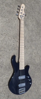 1997頃に作られた、Godin Freeway 5。2020年、F-PUの音が出無いのを安く買って、Lace Alumitone Bass Bar 4.0に交換 ネックをCombat Guitarsで新造、34→35インチ、20→21フレット、ローズウッド指板→反った時に直し易い貼りメイプルに ヘッドのストリングガイド、ペグ交換 |