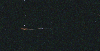 午前1時47分の流星痕 出現後、少し時間が経った頃から写し始めました。 (この途中で赤道儀蹴飛ばす) 痕の撮影中にも流星が写り込みました。 2001年11月19日 1時47分55秒〜51分 15秒露出 12枚 ミノルタα303siSuper 75〜300mm(75mm)F4.5 固定撮影 コニカセンチュリア800 back