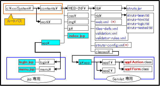 | xxxx.class | WEB-INF\lib\ | アプリケーションは、ここに実装していきます。 |