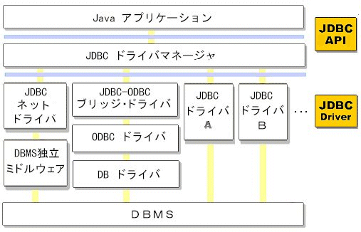 ¢¨JDBC API ¤Ï¡¢¥¢¥×¥ê¥±¡¼¥·¥ç¥ó¡¿¥¢¥×¥ì¥Ã¥È¤Ë¤è¤Ã¤Æ¡¢ JDBC Driver Mnager ¤ØÀܳ¤¹¤ë¤¿¤á¤Î API ¤Ç¡¢Ãê¾Ý¥ì¥¤¥ä¡¼¤Ç¤¹¡£