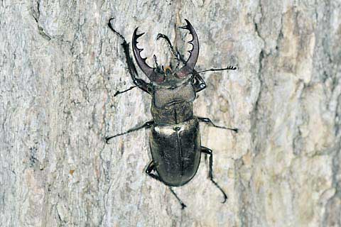 幹に止まったミヤマニクワガタ(雄)
