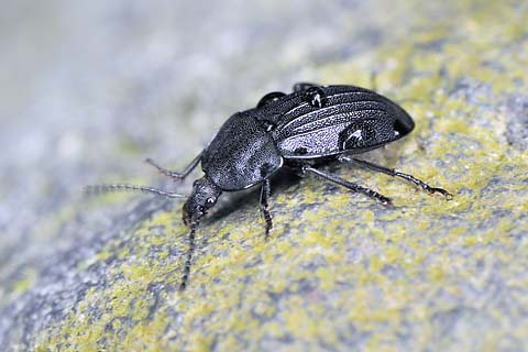 岩の上を歩くクロヒラタシデムシ