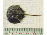 2002年8月19日のカブトガニ探検で、下のカブトガニ一匹が確認されました。放流された幼生が見つかったのは初めてです。