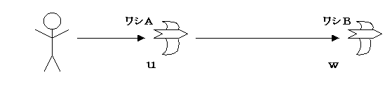 いますから、人からみたワシBの速度vはu+wとなることは自明です。すなわち、人は、ワシBをv=u+wで飛んでいると