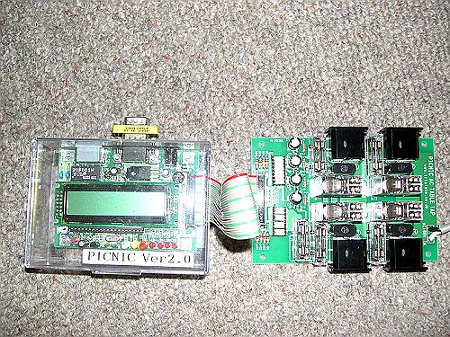 上左の図はPICNICより制御するPIC TABキット単体の完成写真 上右の図はPICNICと繋げた写真です。 上の温度制御システムと組み合わせて動かしてみると ちゃんと自動でリレーがカチャカチャと動き出しました。 動いて一安心。 でもこいつはソフト次第で面白いものが出来そうです。 これからまだまだ改造してみます。ただ 自作のハードも作りたいのですが・・・・ 知識と技術がないので 大変です。笑