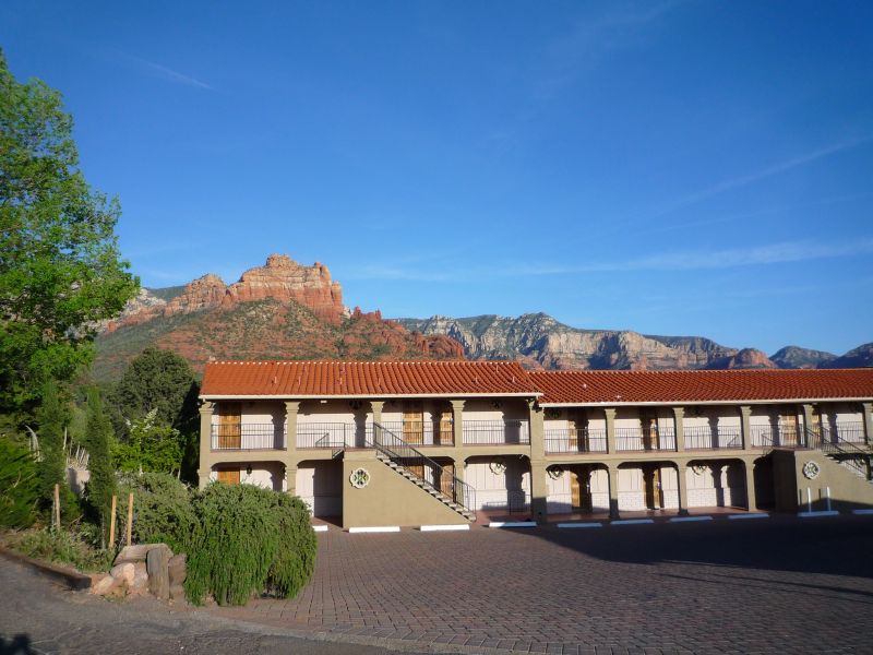 宿へ今日の宿は、"The Y"というセドナの交通の要衝にある "Cedars Resort Sedona"というモーテル。立地のわりには比較的安いモーテルです。バスタブはついていないのがちょっとマイナスですが、場所の便利さは一級品。歩いてレストランにいけるというのはポイントが高い。ビールも頼めるしね。