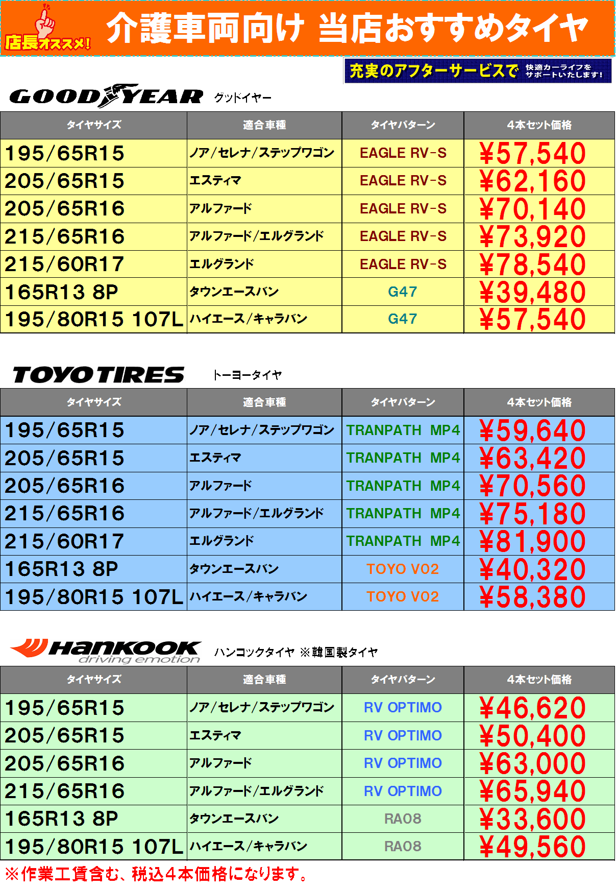 ■ タイヤ価格改定のお知らせ