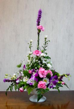 【作品bQ0010131】 クロス・ストリーム 逆Tの形は、スタイルが良く、 安定したデザインを生み出します。 最も外側に当たる部分に、 濃い色の花を配置することで、 内側の花を引き立てる効果がありますね。 小さめの花たちが、せいいっぱい 自分の個性を主張している姿は、 けなげです。