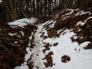 西原峠に到着。南斜面に雪は無い。