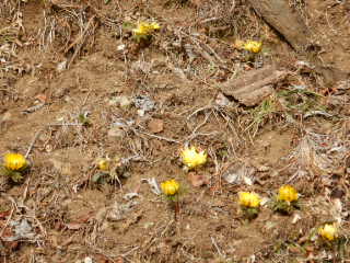 登山道入口付近に福寿草が咲いていた
