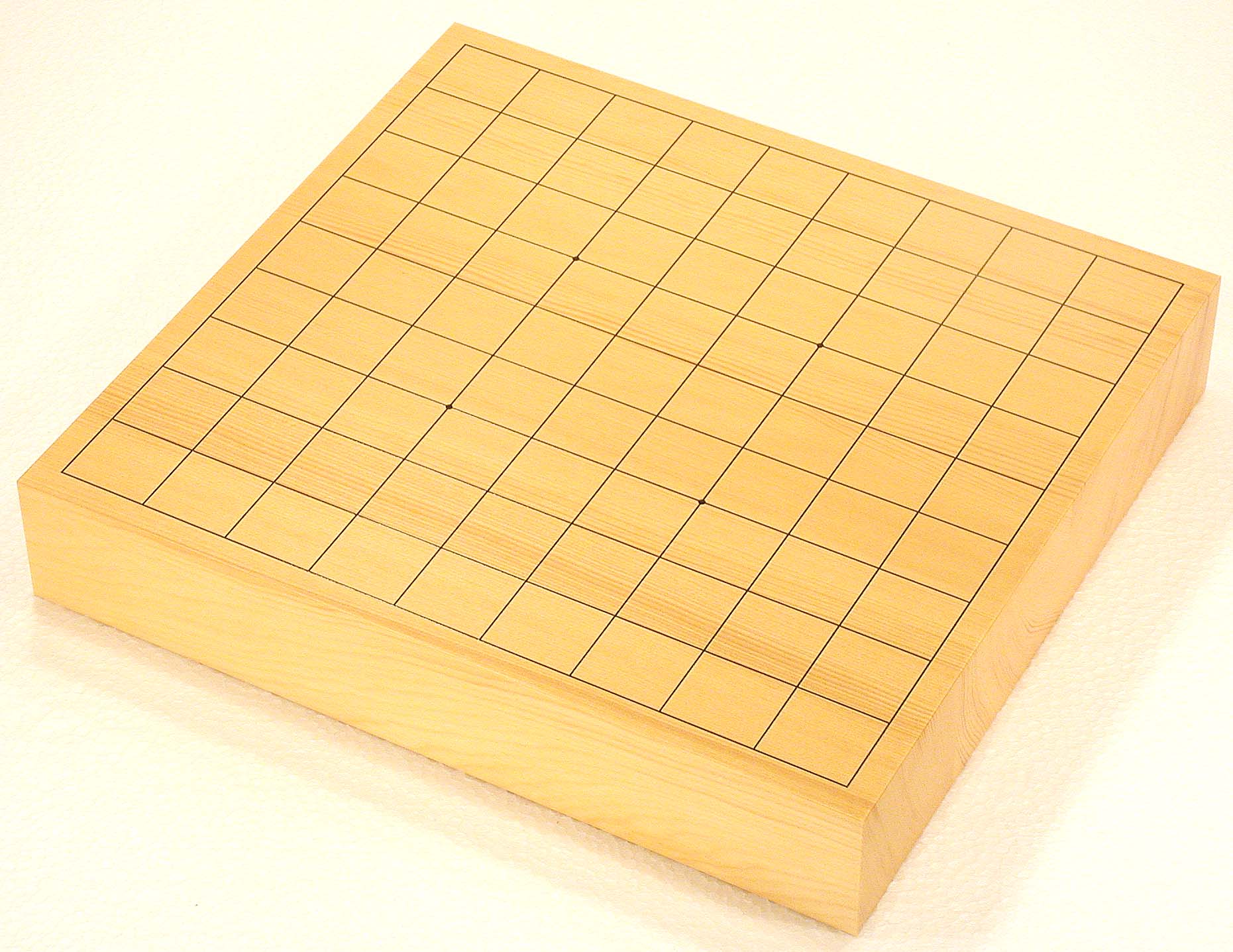 卓上将棋盤/日本産本州かや材/2寸柾目継ぎ(特上品) 細やかな木目の柾目継ぎ仕上げです。(駒台付きです) ¥47,000(税込み) (写真内の 将棋盤の線 が点々と光っているのは、撮影用の照明ライトの反射です) |