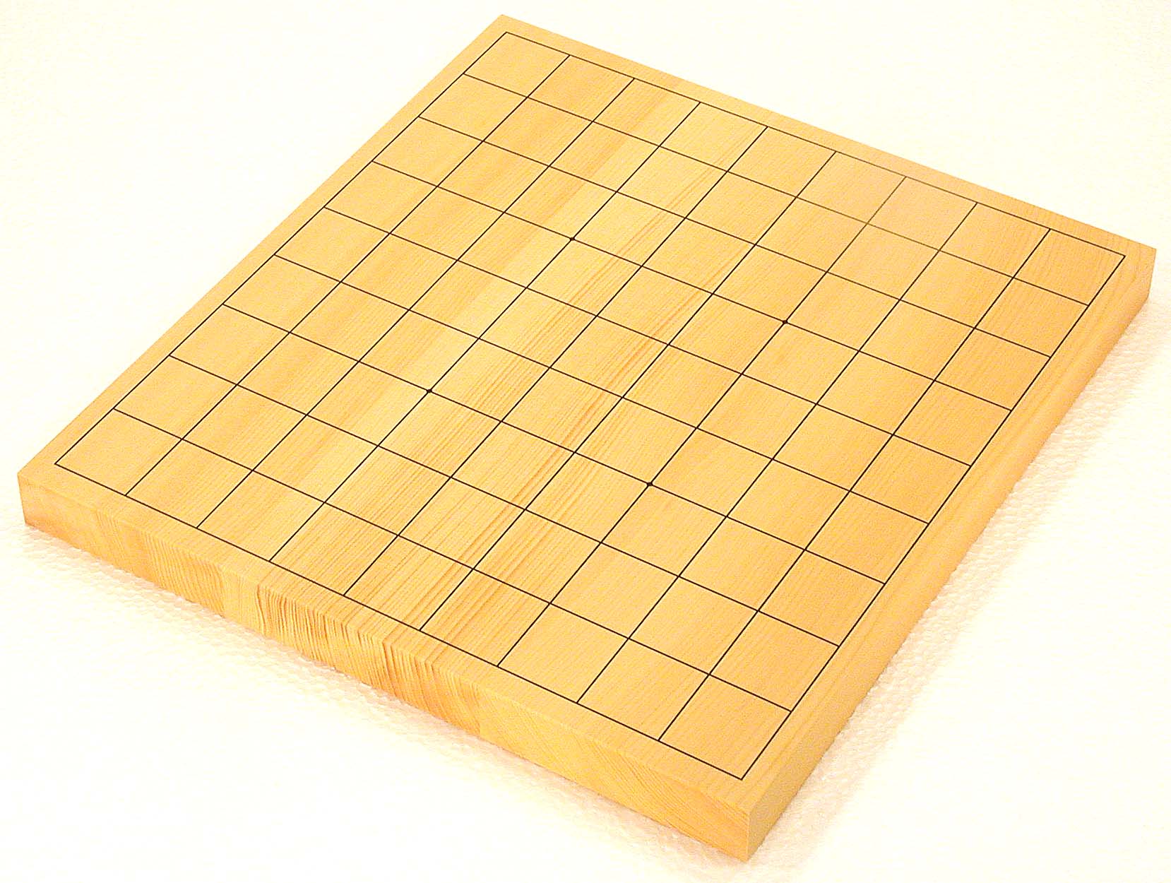 卓上将棋盤/日本産本州かや材/1寸柾目継ぎ(特上品) 細やかな木目の柾目継ぎ仕上げです。 ¥24,000(税込み) (写真内の 将棋盤の線 が点々と光っているのは、撮影用の照明ライトの反射です) |