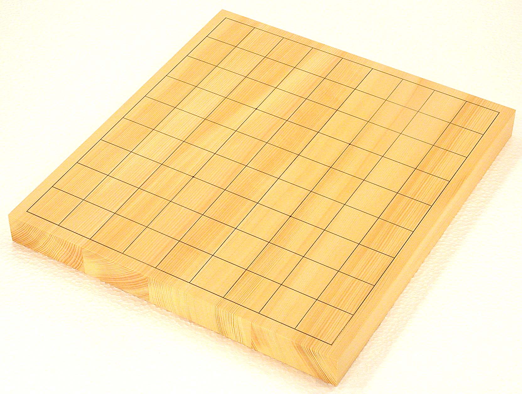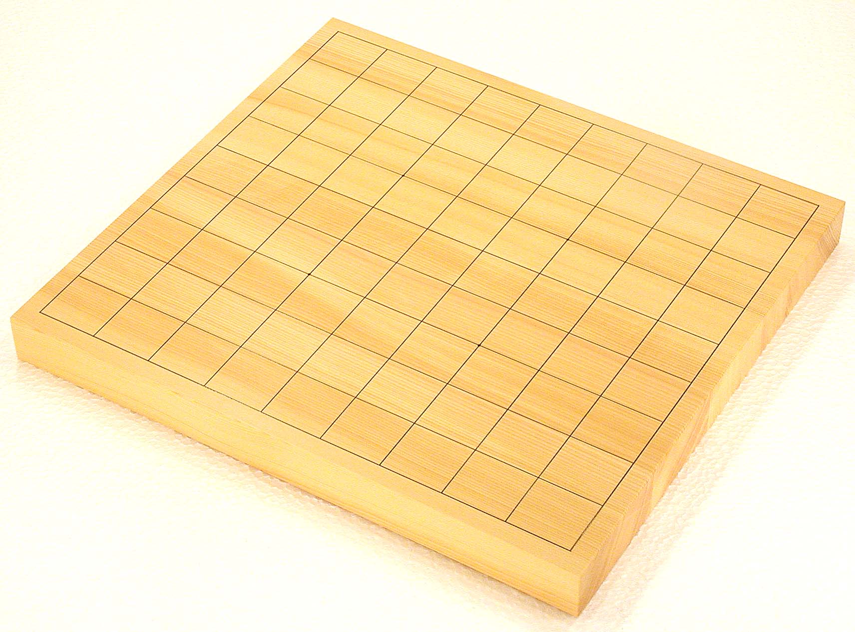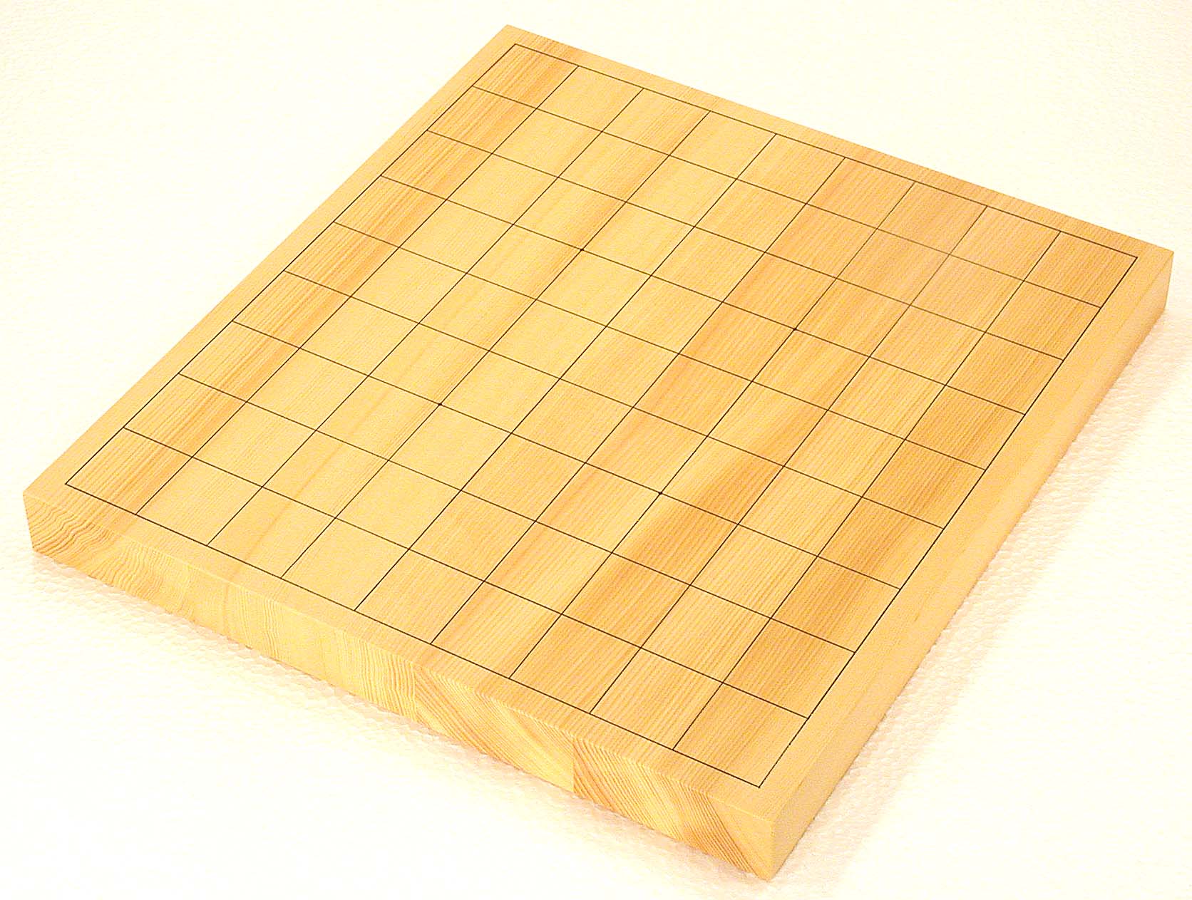 卓上将棋盤/日本産日向かや材/1寸柾目継ぎ(特上品) 細やかな木目の柾目継ぎ仕上げです。 ¥34,000(税込み) (写真内の 将棋盤の線 が点々と光っているのは、撮影用の照明ライトの反射です) |