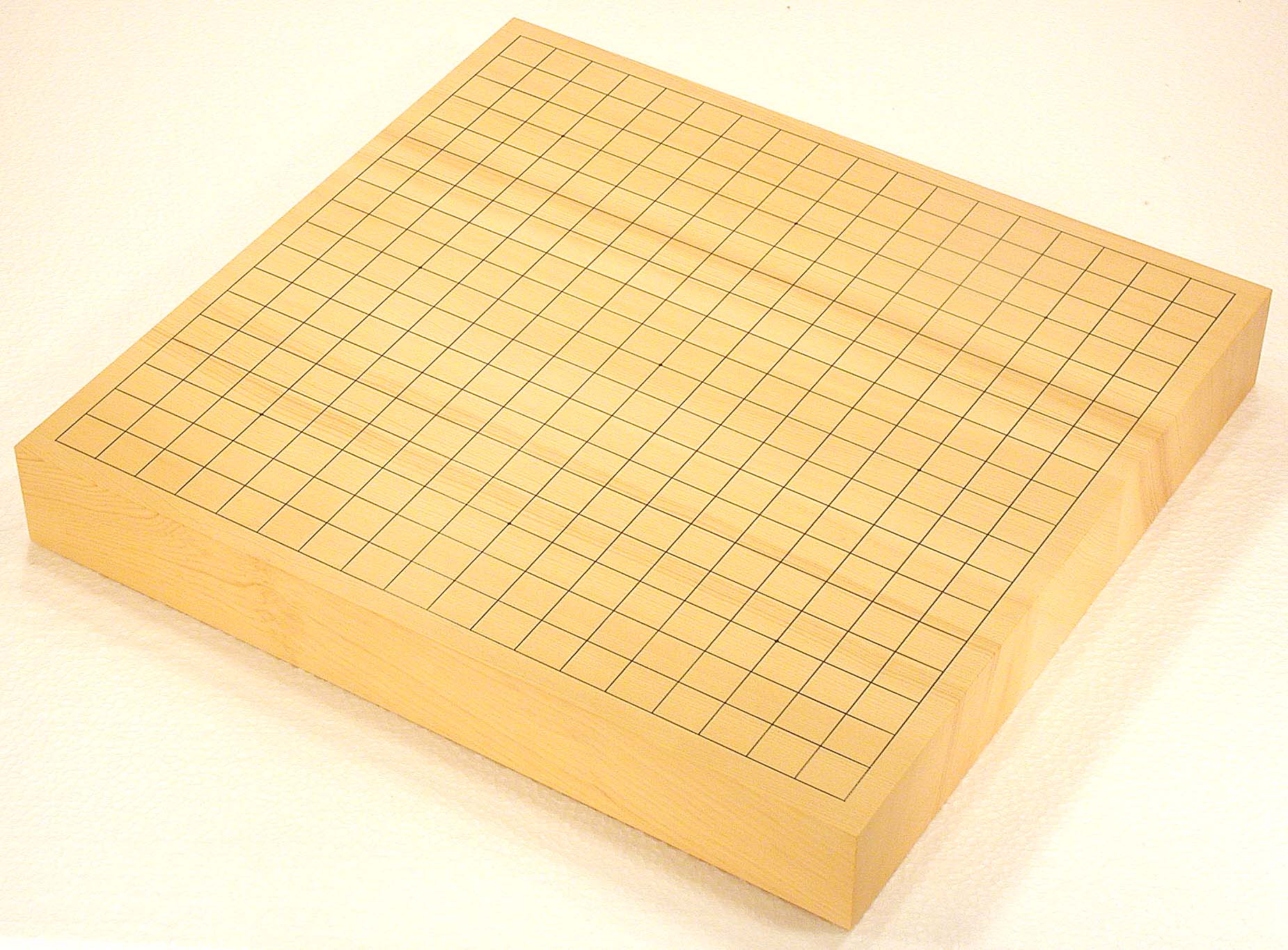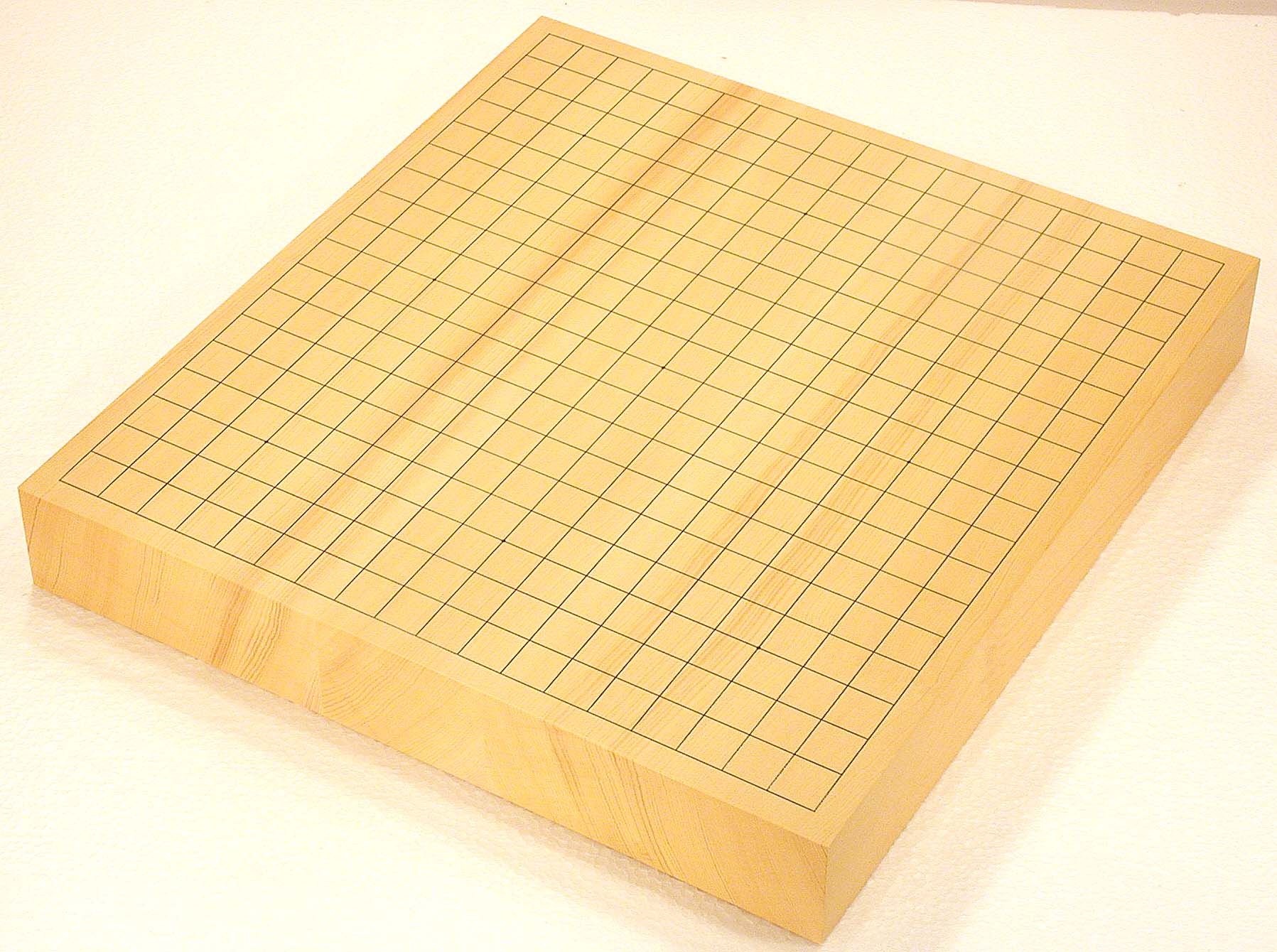 卓上碁盤/日本産日向かや材/2寸柾目継ぎ(特上品) 細やかな木目の柾目(まさめ)継ぎです。 ¥63,000(税込み) (写真内の 碁盤の線 が点々と光っているのは、撮影用の照明ライトの反射です) |