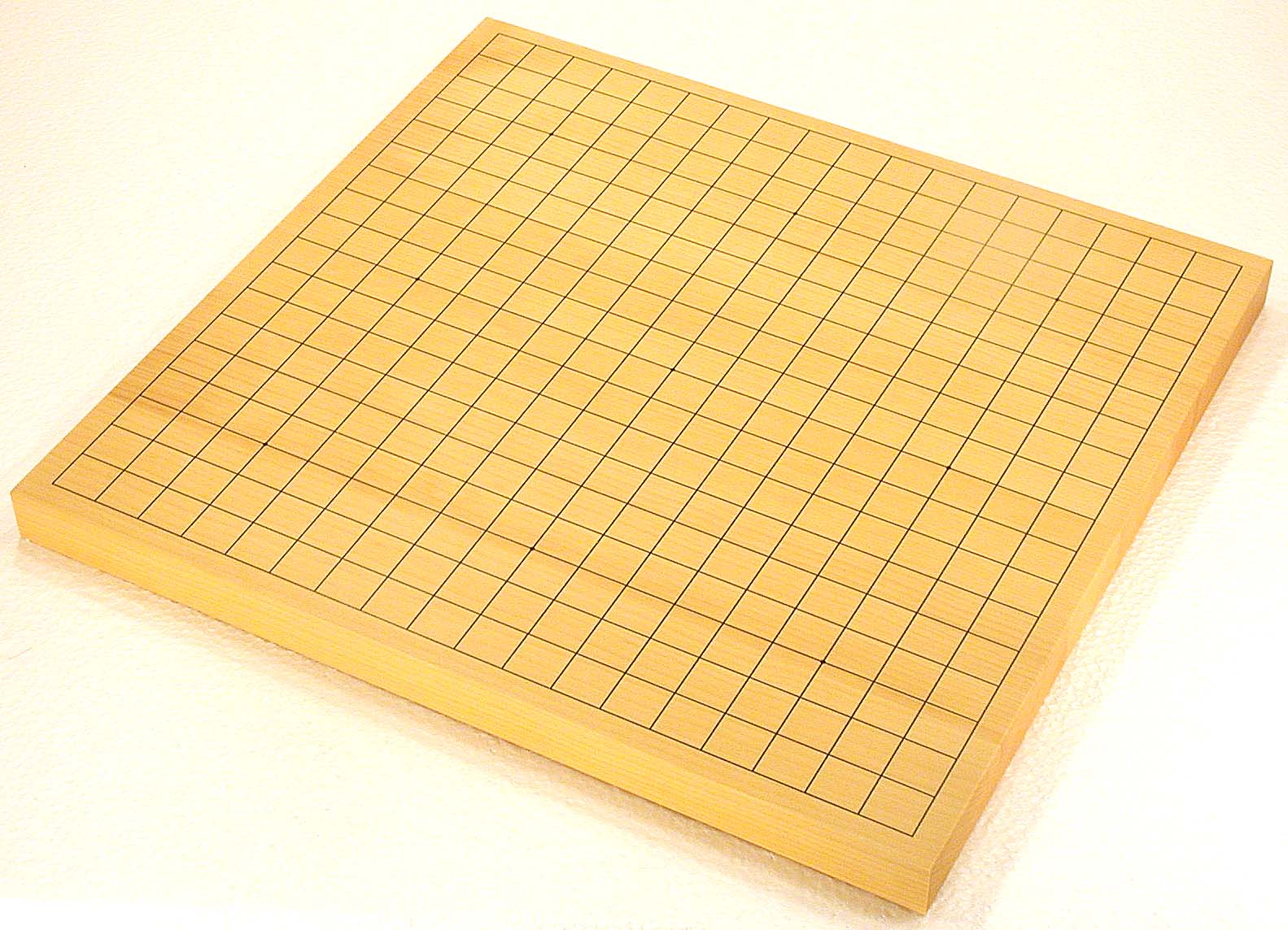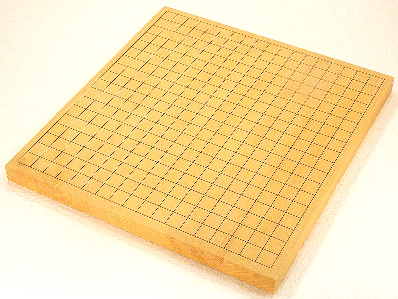 卓上碁盤/日本産本州かや材/1寸柾目継ぎ(特上品) 細やかな木目の柾目(まさめ)継ぎです。 ¥30,000(税込み) (写真内の 碁盤の線 が点々と光っているのは、撮影用の照明ライトの反射です) |