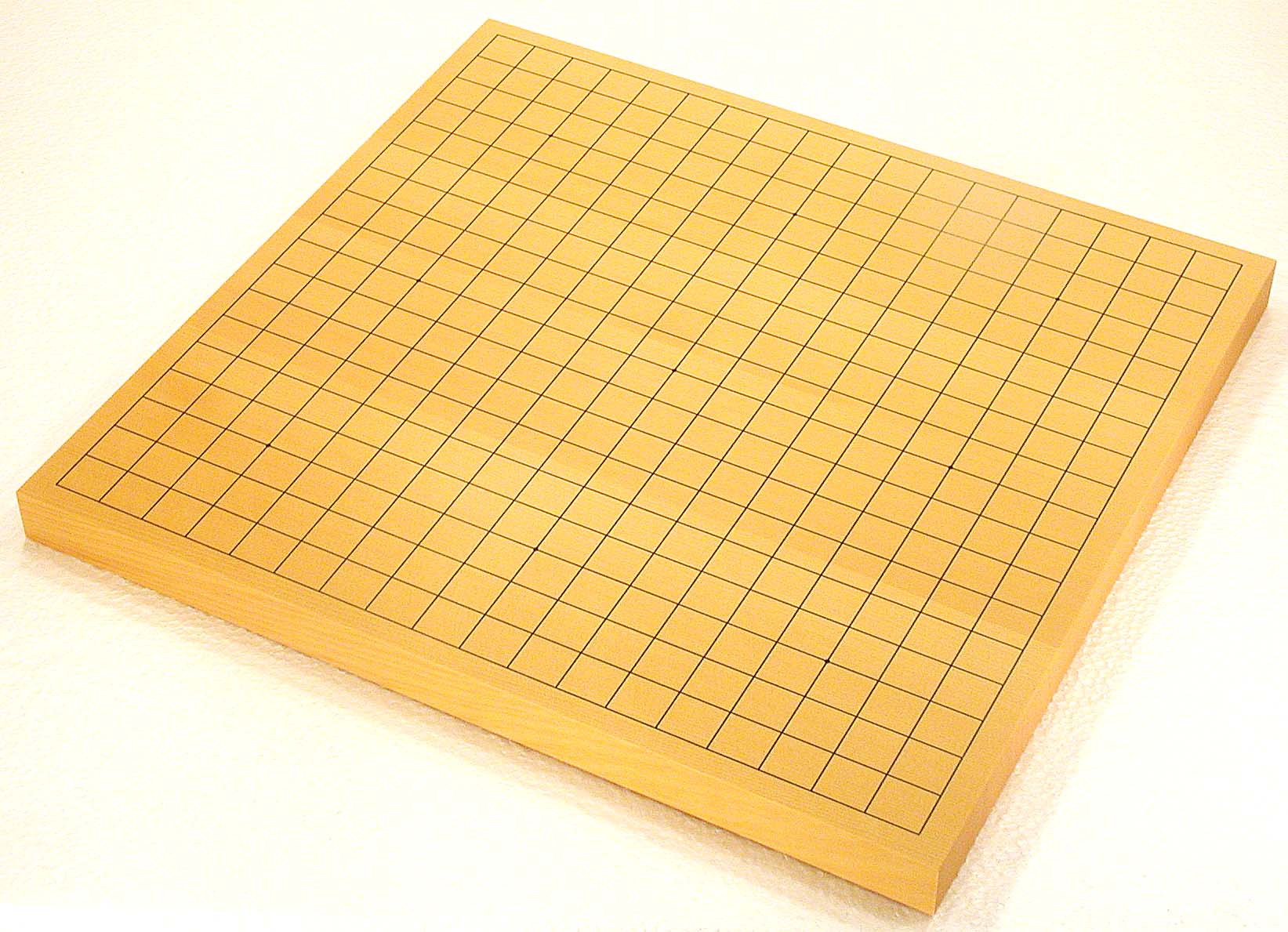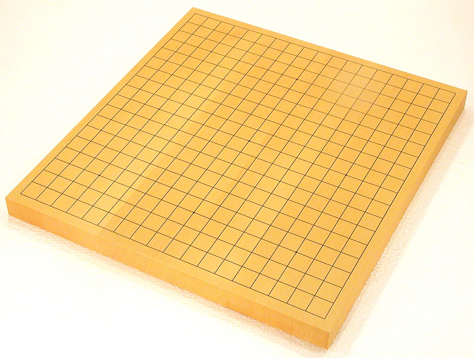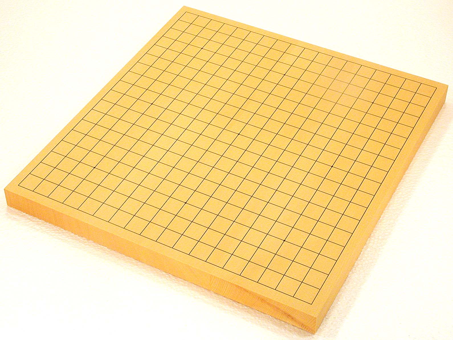 卓上碁盤/日本産本州かや材/1寸柾目継ぎ(特上品) 細やかな木目の柾目(まさめ)継ぎです。 ¥30,000(税込み) (写真内の 碁盤の線 が点々と光っているのは、撮影用の照明ライトの反射です) |