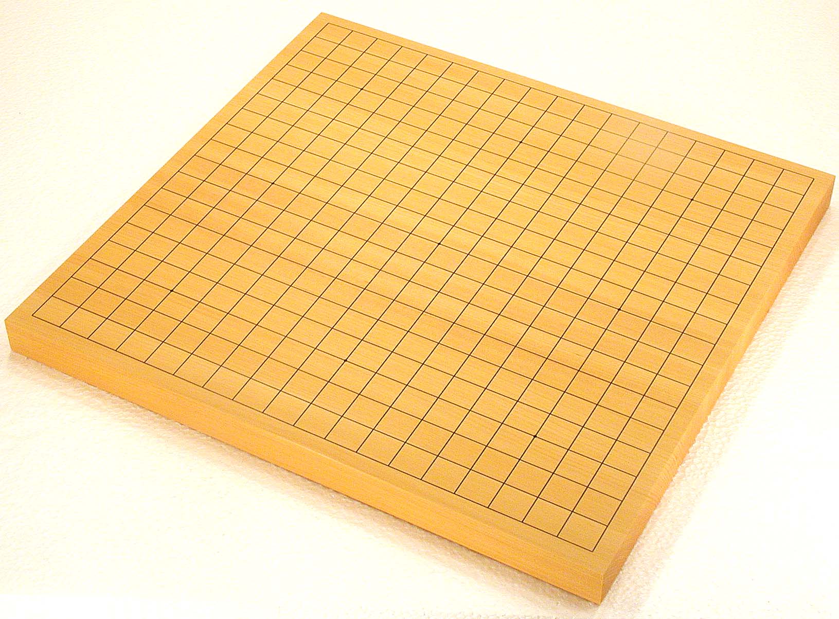 卓上碁盤/日本産本州かや材/1寸柾目継ぎ(特上品) 細やかな木目の柾目(まさめ)継ぎです。 ¥30,000(税込み) (写真内の 碁盤の線 が点々と光っているのは、撮影用の照明ライトの反射です) |