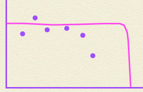 隕石衝突説にたいする疑問のかなりの部分は化石記録を見ると絶滅がじょじょに進行したように見える、というところにあるようです。つまり右のように縦軸に発見された化石の種類の数、横軸に時間をとって、時代ごとに発見された生物の種類、例えば恐竜の種類の数をプロットするとこうなる。