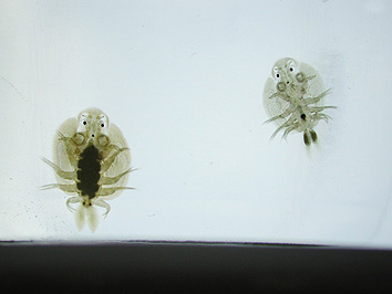 採集したHN 蟹作さんによれば1cmほどの大きさでスイスイ泳ぐのだとか。泳ぎ回るのは意外でしたけど、考えてみれば遊泳用の脚が発達しているので当たり前なんですね。扁平な身体つきを利用してピターと魚にくっついているのでしょうが、いざとなると移動できる動物みたいです。