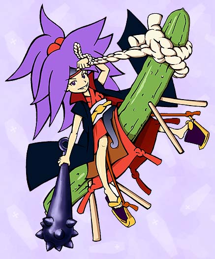 2004年 8月 お盆わらしちゃん:キュウリのお馬バージョン 2004年8月のトップを飾ったわらしちゃんでお盆バージョン。北村が忙しかったのでアップされたのは8月の12日以降。あまり長い間トップを飾ってはいませんでした。お盆に帰ってくるご先祖様がたはキュウリの馬にのってやってきて、ナスの牛に乗って帰るとか。と、いうわけで彼女はキュウリのお馬に乗っています。
