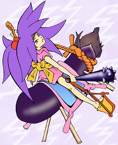 2004年9月 お盆わらしちゃん:ナスの牛さんバージョン 2004年9月のトップを飾ったわらしちゃん。8月はキュウリのお馬、9月のはナスの牛。背景は稲妻のつもり。最初はブルーの地色だったのだけど、目がいたいので途中からこの色に変更。でもなんかしんきくさいというか、暗い感じ。 ←わらしちゃんギャラリーに戻る