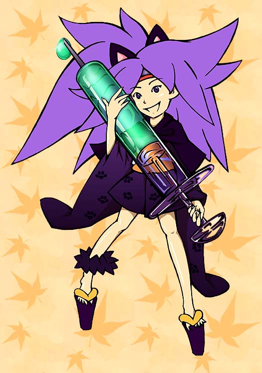 いとしい君がいなくてさくら〜〜〜ん していても \(゜□ ゜;)ノ φ( ̄‐ ̄ )・・・・・・ わ〜〜〜〜〜〜〜〜 プッスウ〜〜〜〜〜 《゜∀ ゜ 》―⊂┤ヽ( ̄∀ ̄ ) はいはい落ち着こうねえ、いい子だからねえ〜〜 | ∧ ∧ ∩ヽ(^∀^) いまならこのネコ印鎮静剤が1本たったの2万ネコペセタ ┴とまあ、このような北村の書き込みが由来でうまれたわらしちゃん。ネコなんでいわゆるネコミミつけてます。服装はもともとハロウィンの小悪魔の仮装だったのだけど、悪魔の角をネコミミに変えて転用。