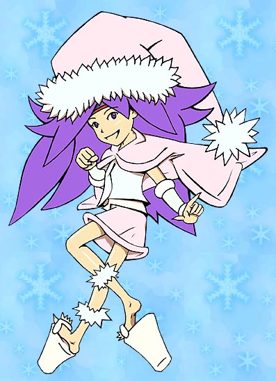 2004年12月、クリスマス以降のわらしちゃん。年末までこのトップでした。わらしちゃんの服装はクリスマスバージョンを補正したもの。マントは厚めで、全体的に少しフカフカ、暖かめに。