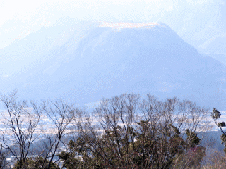なるほど、そう言うことだったのか。へクソカズラは、樹木の傷を治す薬を持つ医者だったんだ。蛇威按斗は、へクソカズラの精に言われたとおり、一日の仕事が終わると、その日にでた鋸屑を残らず焼き捨てた。すると、翌朝には切り口がはっきり見えて、さらに作業は幹の核心に近づいていった。 むかしの人は、よくもこんなでかいお話を考えだしたもんだ。それも玖珠地方にとどまらず、長崎から朝倉・日田と次々に筑後川流域をお話の世界に巻き込んで行く。「童話の里」っていうのは、想像もできない大むかしに始まっていたのかもしれない。よく晴れた日、車で伐株山に登ってみた。下から見上げて想像したとおり、頂上は鋭利な刃物で切ったように平面が広がっていて、若者たちのハングライダーのメッカになっていた。 |