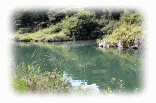 川鵜:体長80センチほどで両の翼を広げると150センチほどにもなる水鳥である。川魚を主食として本州と九州で繁殖する。最近では、観光用の「鵜飼い」として、原鶴温泉の風物詩にもなっている。 親切な町の長老が五郎ヶ淵を案内してくれた。「むかし、淵の深さは30尋(50b)もありました」と説明される。当時に比べて水深が浅くなったといっても、やっぱり五郎ヶ淵の底には主がいそう。 |