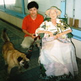 車いすを押す私の横に愛犬もいっしょに歩調を