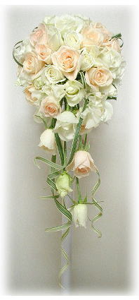 | ◆キャスケードブーケ(183) バラ(ティネケ)・スカビオサ・ スイトピー・ホワイトスター・アイビー ¥26.000 |