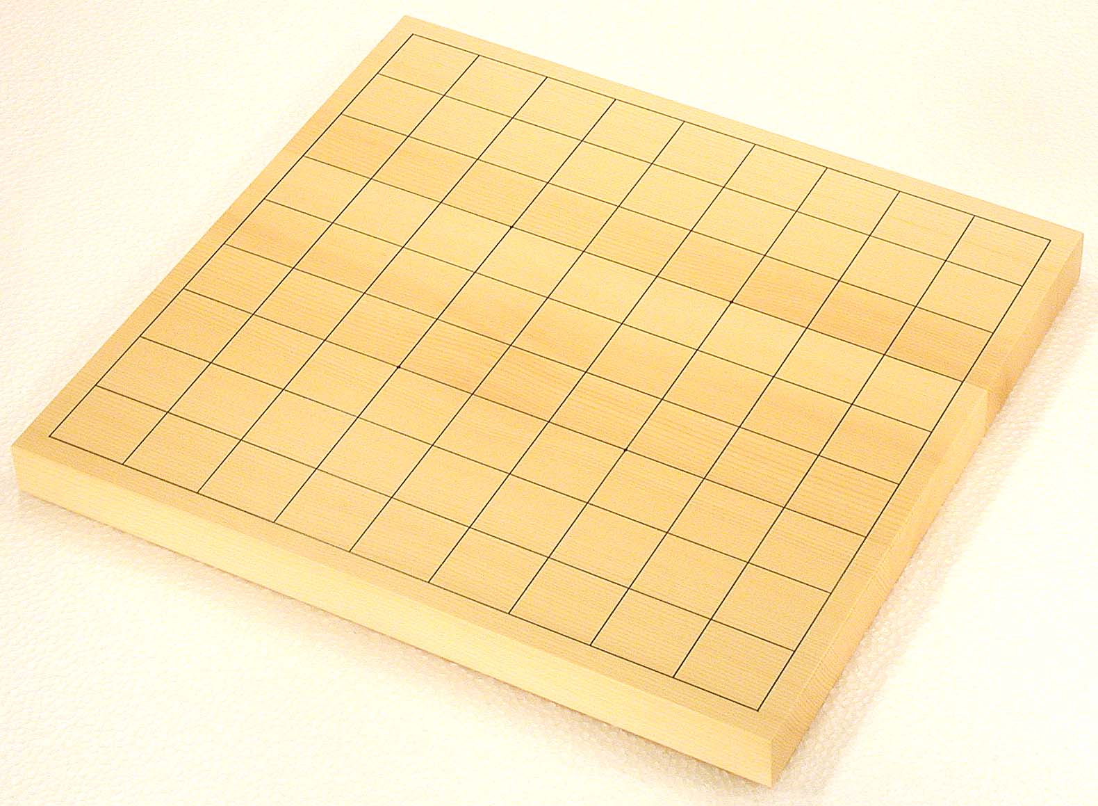卓上将棋盤/日本産日向かや材/1寸柾目継ぎ(特上品) 細やかな木目の柾目継ぎ仕上げです。 ¥34,000(税込み) (写真内の 将棋盤の線 が点々と光っているのは、撮影用の照明ライトの反射です) |