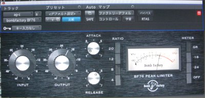 アコギには久しぶりにBOMB FACTORYを試してみました。とてもシンプルで使いやすいですね。ピアノにはお気に入りのコンプSMACを、また左右のアコギにはTOOLS純正のコンプで色付けしてます。 |