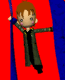 しかし・・・赤の艶のあるロングジャケット(袖にはビラビラがついている/爆)を着て、