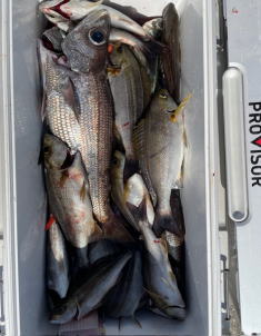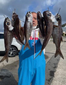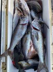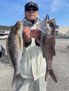 | 2月15日(日) 黒ムツ・五目で出船 1便黒ムツ五目で出船致し、黒ムツ良型、美味しいお魚も、お土産十分釣りました。今日は良型のアジも交じって、トップは12匹超え!他メダイ 後半はマダイとマハタ狙いで、マハタは船中2匹、マダイは残念でした。只今2便船、コマセ五目で出船中!イサキ釣れているそうです。 |