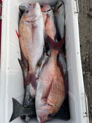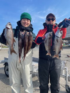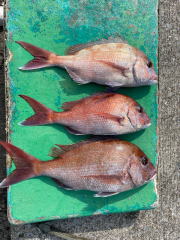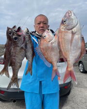 | 3月30日(月) 黒ムツ・五目で出船 マダイ(^^)v(^^)v 黒ムツと美味しいお魚は連日好調です 黒ムツはポツリポツリ、貸し竿の方含め皆さんお土産釣れています。美味しいお魚も全員お土産になりました。他ハチビキ・アジ 後半のコマセ五目はマダイがよく釣れました。最大1.59kgでトップ4匹・3匹・・・・・。他イサキのお土産 |