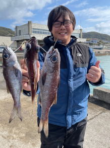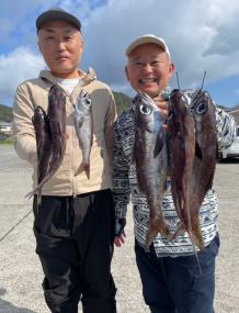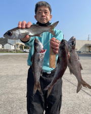 | 3月23日(月) 黒ムツ・五目で出船 4名様、1組でした ビギナーさんもいらっしゃいましたが皆さん十分釣っていたと思います。黒ムツから入って、良型中心にポツポツポツ・・・沖で大型黒ムツも釣れお土産十分。まだ釣れていましたが余裕で美味しいお魚さんへ・・こちらも多点掛け入れ食いで、お刺身サイズもしっかりいました。他アジ・さば 後半のコマセ五目はイサキが大・中・小交じりで入れ食い(^^)v なので今日はイサキ狙いで終わりました |